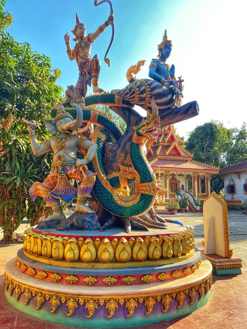 Для следующей интересной достопримечательности придется отъехать 25 км к юго-востоку от столицы, где на берегу реки Меконг раскинулся «город духов» или Парк Будды. Эта туристическая локация представляет из себя парк скульптур с более чем 200 буддийскими и индуистскими изваяниями.