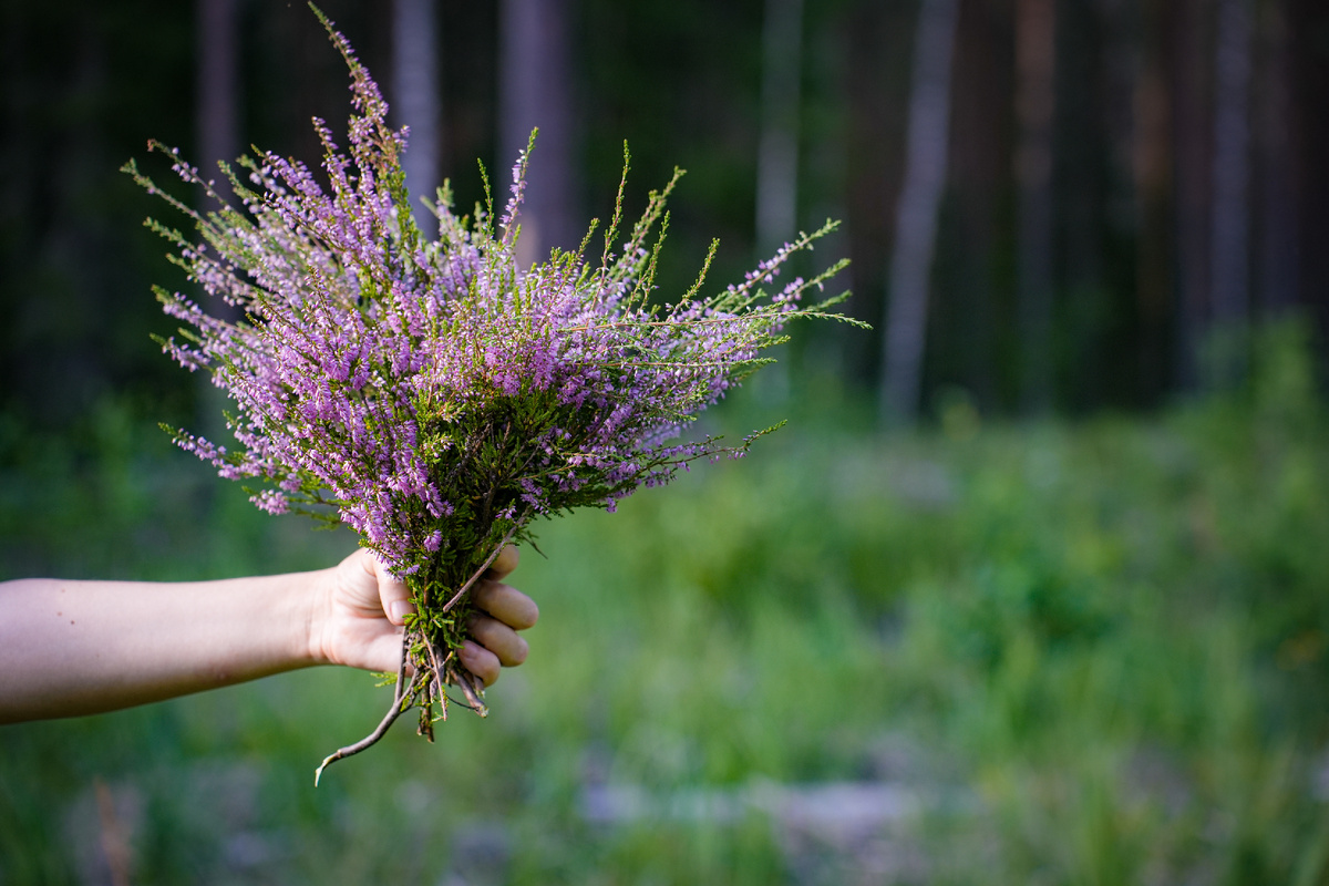 В августе в лесу ещё цветёт душистый ароматный вереск — растение с красивыми соцветиями от белого до лавандового цвета. Пробовала ферментировать листья, но они сильно горчат, поэтому использую только цветки. Их ещё можно просто свежими в чай добавлять. Цветки маленькие, не очень плотно крепящиеся к стеблю, поэтому их довольно просто снять двумя мальцами просто зажав стебелёк в руках и потянув — цветки легко осыпаются. Потом довольно легко их можно от зелёной части перебрать. Если оставить много зелёных листьев и стебельков, сироп может горчить и цвет будет буро-зеленый. Я готовлю из цветов вересковый "мёд" для десертов, чая и верескового маршмеллоу. По сути просто сахарный сироп, ароматизированный цветами вереска. Он очень деликатно пахнет нектаром, мёдом, цветами. Внимание! В некоторых регионах вереск в Красной книге, проверяйте. В Красной книге РФ его нет. Готовится очень просто: Сварить сироп из сахара 300 гр с водой 200 гр. Я увариваю на среднем огне до той консистенции, какая мне