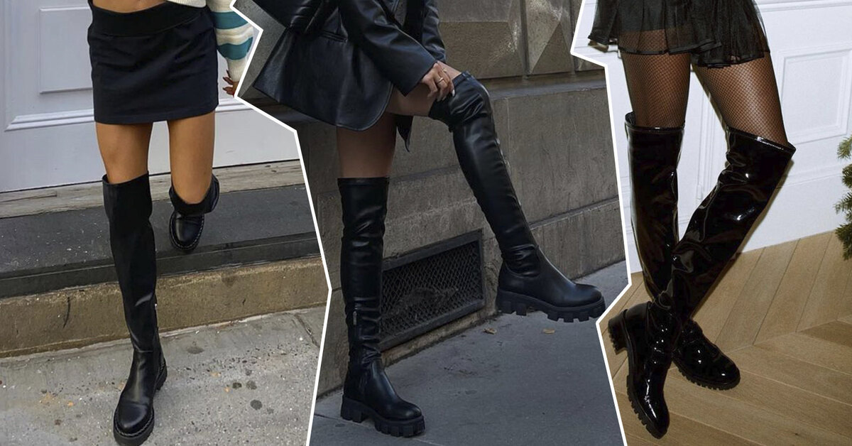 - Описание: Высокие сапоги, особенно модели, доходящие до колена или выше, остаются на пике популярности. Они могут быть выполнены из различных материалов, включая кожу, замшу, текстиль, и даже винил. Этот вид обуви создает элегантный и вытянутый силуэт.