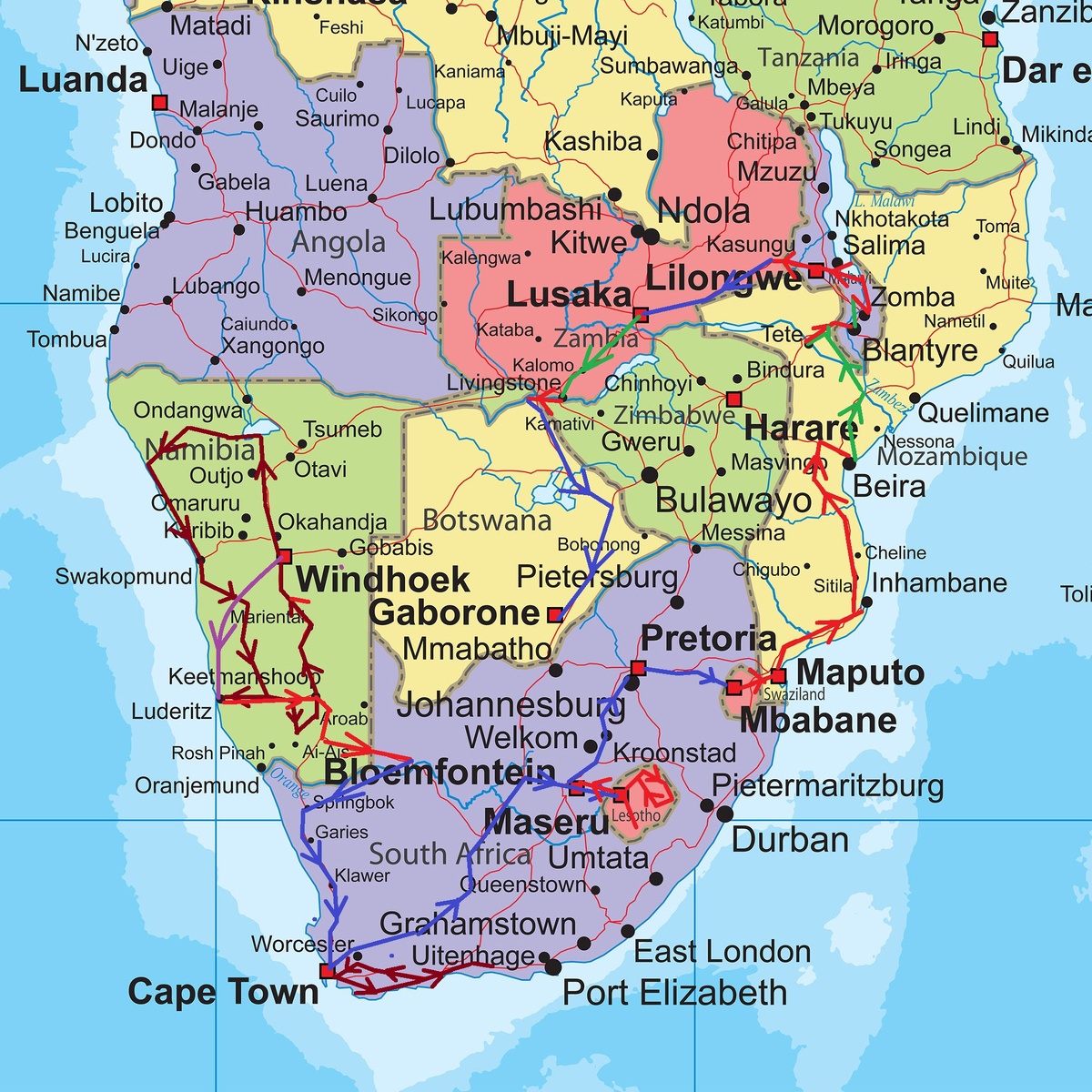 Были мысли заехать ещё в АНГОЛУ. Но увы, не хватило, ни времени, ни сил. Всё-таки, Африка выматывает. Хоть и не так, как западная, но выматывает. Хотя все, кто был в Анголе, очень её хвалят и довольны. Ну как-нибудь доберёмся.
