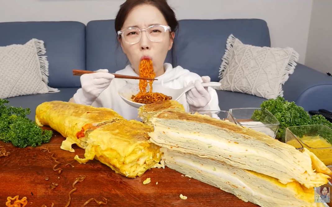 А вы бы могли за один прием пищи съесть омлет из 100 яиц, попутно обмакивая его в разные соусы и заедая лапшой? А известная мукбанг-ведущая кореянка Ссуен может, и этим ее трапеза не ограничивается.