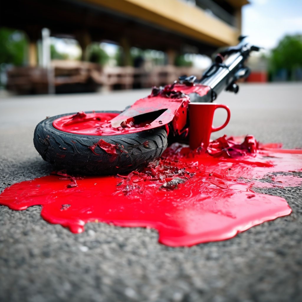 И вот я мчусь по тротуару, в левой руке лавандовый раф на кокосовом молоке в стакане, в ушах наушники с модной музыкой, правой рукой держусь на ручку самоката. Погода хорошая, солнечно, 8 утра. Надоедливые пешеходы то и дело пересекают траекторию моей езды. Пока удаётся объезжать. И что им дома не сидится. Вижу впереди светофор и пешеходный перекрёсток. Успею, если добавлю скорости. Жёлтый сигнал светофора, мчусь, уступят, чё они не видят что-ли. ВИЗГ ТОРМОЗОВ, удар, лечу через капот машины, падаю, вроде ничё не пострадал.