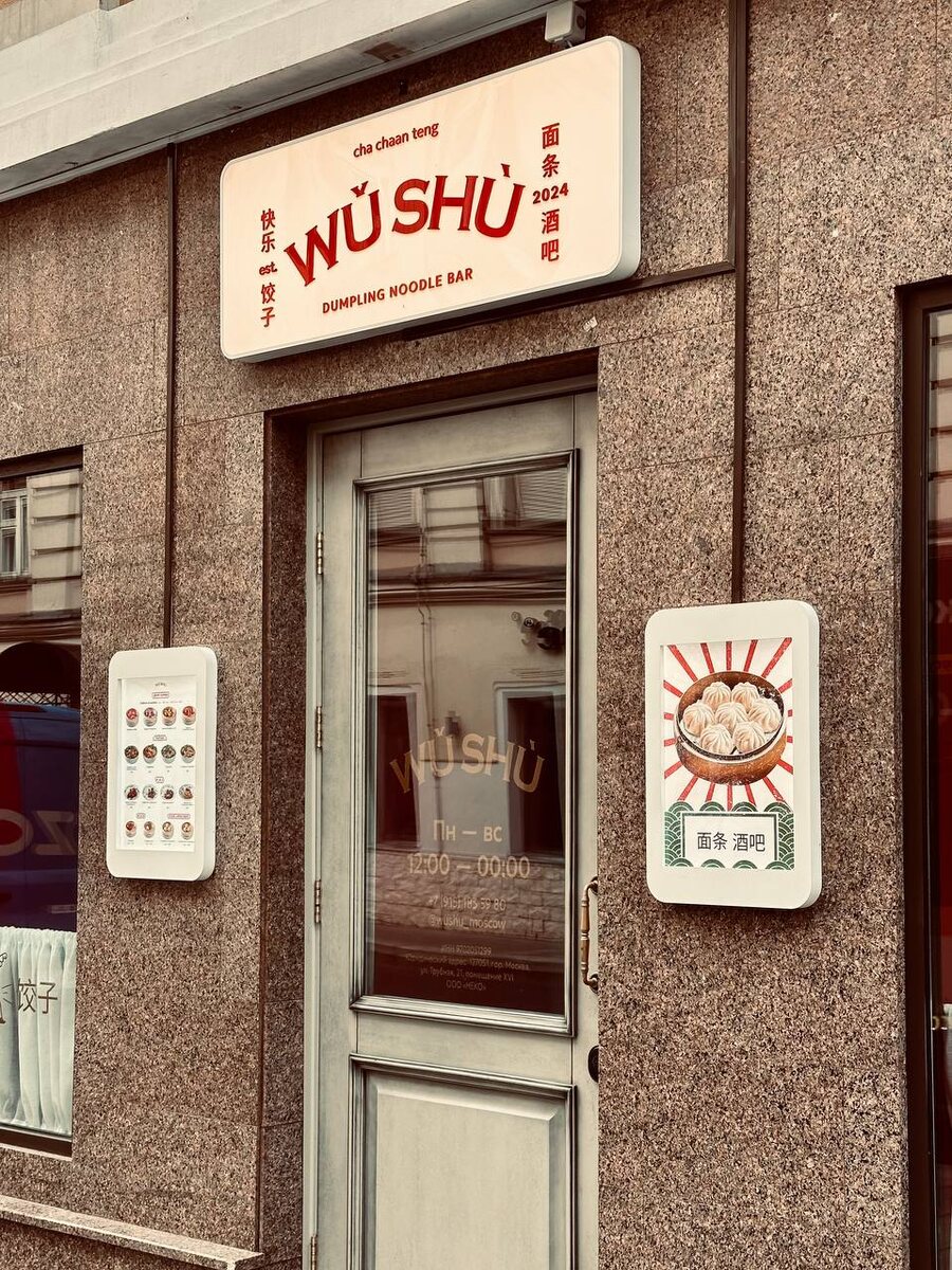 Подпишитесь на мой канал в телеграме: обзоры новых и просто интересных мест в Москве и других городах. На днях я посетил новую китайскую пельменную-чайную Wu Shu, открытую братьями Левченко (известными по проектам J’Pan, Ra’Men, Kook и будущему Senti Menti на Забелина). Заведение на месте бывшего бара «Герои» полностью обновлено. Это небольшое пространство, представляющее карикатурный Гонконг с московским взглядом на кухню и интерьер. Wu Shu, как и другие проекты братьев, рассчитан на молодую аудиторию, которой не сколько важна аутентичность, сколько атмосфера. Меню — розовая книжка с картинками — здесь, к счастью, не слишком обширное. Включает различные виды пельменей: бао, дим-самы и вонтоны. Также есть немного салатов и закусок, таких как баклажаны «в стиле кунг-фу». Чайная карта представлена в виде простой таблицы с двумя ценами, а также предлагается выбор авторских коктейлей. Я попробовал бао с говядиной и свининой, и они оказались отличными. Тесто тонкое, бульон во всех трёх штук