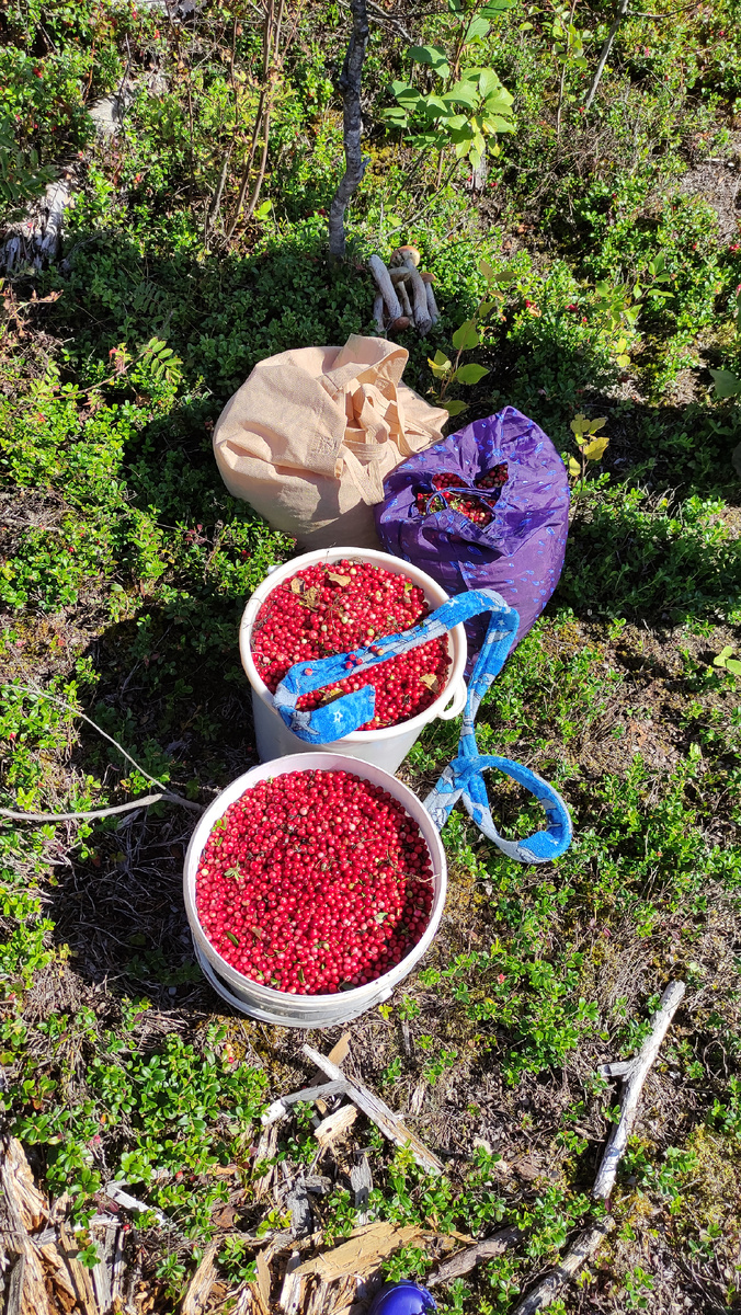 Я пришла из леса. Хотя, не пришла - приползла и притащила почти 20 литров брусники. Мое ведро самое нижнее и еще синяя сумка. Все остальное набрали родственники. И вот лежу, отдыхаю, и пишу. Покажу, сколько брусники мы нашли. Красота ведь какая! Теперь на всю зиму хватит. Но, буду честной, я собирала и руками и собиралкой. Кстати, везти сумку пришлось в детском кресле, иначе, все ягоды по машине рассыпятся. Самое трудное теперь - оторвать себя от дивана.