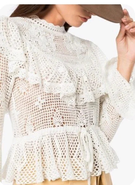 Блуза крючком в романтическом стиле - элегантное и воздушное изделие, которое подчеркнёт вашу женственность и создаст нежный образ. Эта блуза связана крючком из тонкой пряжи, что делает её лёгкой и приятной к телу.