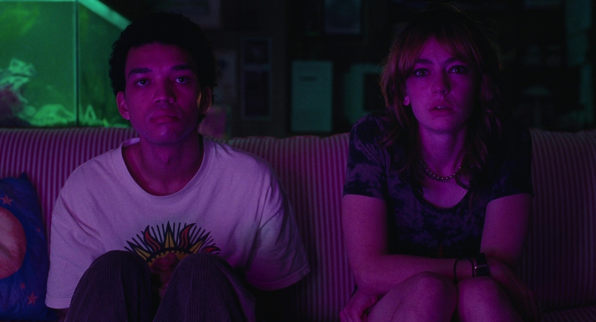 В фильме «Я видел свечение телевизора» отчасти можно идентифицировать отголоски жанра хоррор, но картина режиссёрки Джейн Шёнбрун пугает не жанровыми примочками, а своим безысходным и мрачным содержанием. Шёнбрун погружает в вязкую дымку сновидческого мира, из которого выкачали весь воздух и потушили искру надежды. Мы медленно наблюдаем за травмирующим угасанием главного героя, не справившегося самой жизнью. Джейн Шёнбрун выстраивает эстетическую, визуальную иллюстрация олдскульной эпохи 90-х, будоражит ностальгические рецепторы основополагающими атрибутами в виде VHS и старых сериалов, чтобы чётче подчеркнуть тему болезненного эскапизма. Пространство у Шёнбрун пылает яркими визуальными красками, но это лишь ширма, за которой скрывается глубокая травма и бесконечная пустота. Именно в этом вакууме безысходности Шёнбрун через персонажа Джастиса Смита транслирует пессимистический портрет миллениала, стагнирующего в своём коконе личного комфорта. Герой так боится настоящей жизни, что наход