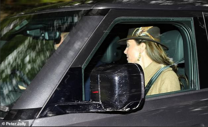 Впервые принцессу Уэльскую, Кейт, увидели когда она вместе с мужем, принцем Уильямом, направлялась в церковь Crathie Kirk. Её видели в автомобиле. Кейт узнали по шляпе, которую она уже не раз надевала. За рулём был Уильям, он разговаривал с женой. Судя по всему, настроение хорошее. Также вместе с ними на воскресную службу ехали король и королева. Принц Эдвард, Софи, их сын Джеймс и Тим Лоуренс. Думаю, что будут ещё фотографии, поэтому следим за событиями.