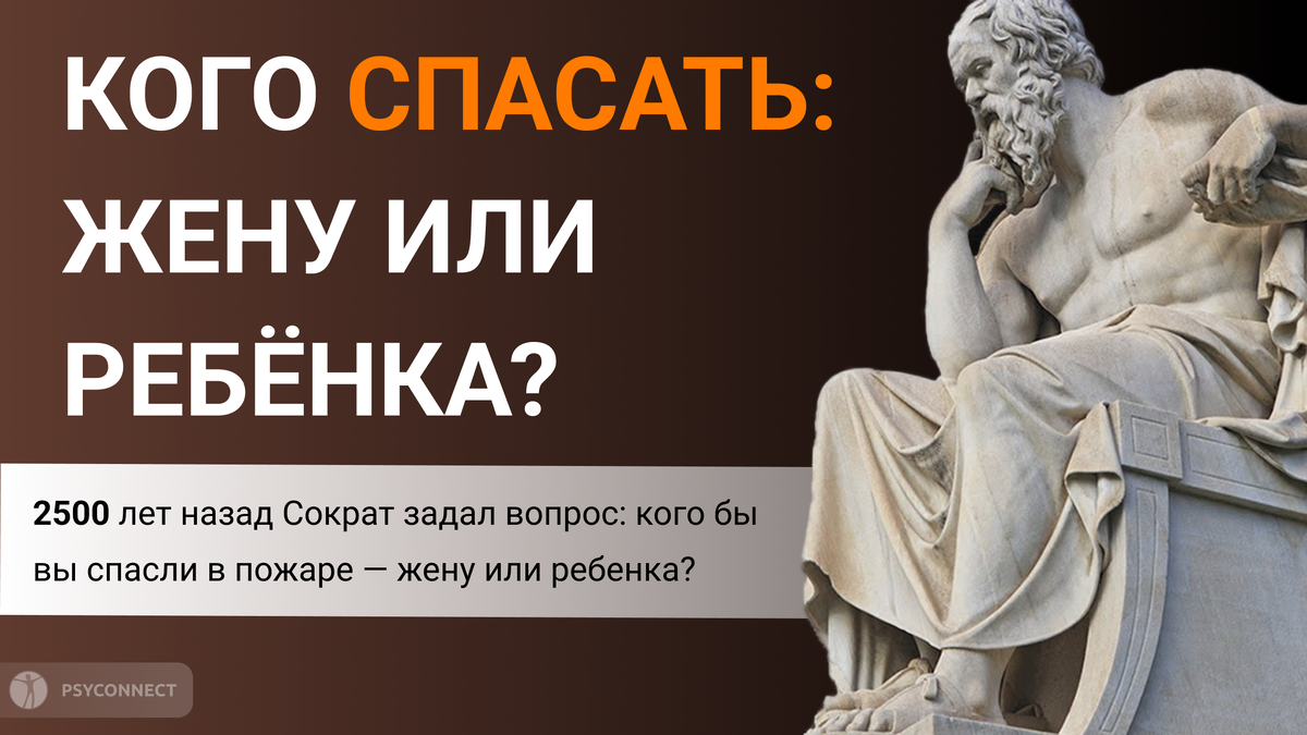 2500 лет назад Сократ задал вопрос: кого бы вы спасли в пожаре — жену или ребенка? Однажды долгим осенним вечером, когда семья разошлась по своим комнатам после ужина, я достал с полки книгу Сократа. Иногда полезно почитать такие философские размышления. Сократ, великий философ и отец многих детей, любил выходить на площадь и задавать своим современникам каверзные вопросы. Один из таких вопросов поразил меня: если начался пожар, и в огне находятся жена и ребенок, но спасти можно только одного, кого бы вы выбрали?