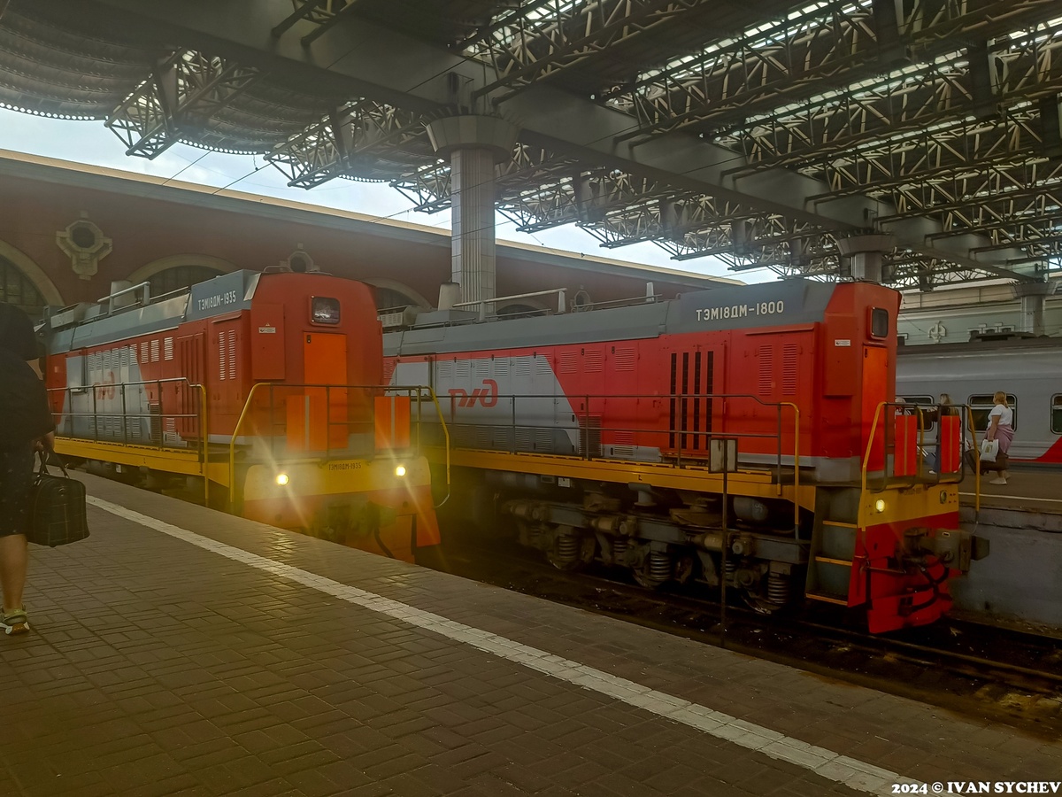 Как уже поняли постоянные читатели, был я в Самаре, и вот, вернувшись, потихоньку начинаю разбирать фото и видео оттуда. На самом деле фотографий много, тем планируется достаточно, но начну я все же со стандартной для себя темы: то, как выглядит железная дорога глазами пассажира. И большинство фотографий сделано телефоном, многие через стекло вагона идущего поезда, поэтому качество фотографий – не идеальное. Но, надеюсь, само повествование хоть чуть-чуть, но зацепит и понравится. Итак, поехали. 1. Поехали мы в Самару, естественно с Казанского вокзала (Анна, простите, но я опять на Вашей территории). И сразу в тупиках встретила пара тепловозов серии ТЭМ18ДМ с номерами 1935 и 1800. 2. Вагон у меня был первый, пришлось идти к концу перрона, где встретили меня «три богатыря» все той же серии. Номера этих тепловозов слева направо: 1803, 1943, 1778. 3. Пара тепловозов, стоящих на одном пути. (Самые давние читатели наверняка про себя сказали: ага, и специально для ПП с ПС «посторонние люди в