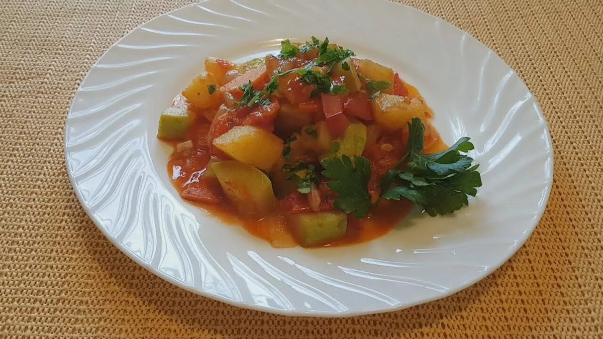 Рецепт для деток от 1 года Ингредиенты: 🥔50 г картофеля 🍠50-80 г кабачков 🫑50-80 г болгарского перца 🍅50 г помидоров 🥕25 г моркови 🧂Соль по вкусу (от 2 лет) 🧅25 г лука (для жарки) (жареный - от 3 лет) растительное масло (для жарки, от 3 лет) 🥬Зелень по вкусу и желанию (укроп - от 18 мес.,петрушка - от 2 лет) Как готовим: 1️⃣Лук мелко нарезать и обжарить на растительном масле до золотистого цвета 2️⃣Морковку натереть на терке или мелко нарезать (как вам удобнее). 3️⃣Кабачки почистить, нарезать кубиками. 4️⃣Картофель почистить, нарезать кубиками. 5️⃣Перец очистить от семян, нарезать соломкой. 6️⃣Помидоры нарезать кубиками. 7️⃣К обжареному луку добавить морковь, картофель, кабачки, перец и тушить под крышкой, около 10 минут (воды добавлять немного, так как овощи дадут сок). 8️⃣Затем добавить помидоры, посолить и тушить (под крышкой) до готовности.