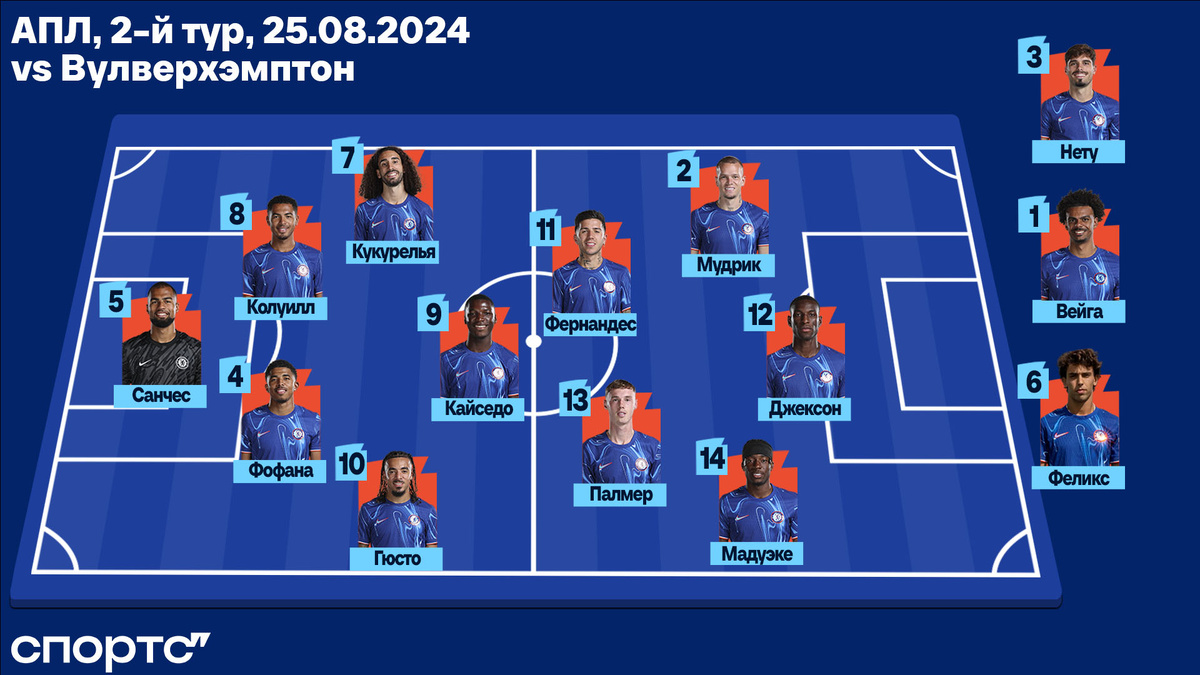 Россыпь голевых действий! Роберт Санчес: филигранный пас, начавший атаку на второй гол. Испанец все время выдавал классные забросы, которые заметно обостряли игру «Челси». С пропущенными голами поругать особо и не за что. Уэсли Фофана: повинен во втором мяче команды. Да и в целом кажется пока слабее, чем Колуилл в обороне. Энцо Фернандес: наконец расцвел на позиции. Классно двигал мяч, перекусывал билдап «Вулвз» и тем самым начинал опасные контратаки. Мог бы и забить, но партнеры игнорировали его умные забегания несколько раз. Михаил Мудрик: сегодня стал жертвой рейтинговой системы. Провел на поле всего 45 минут, в целом выглядел неплохо, но на второй тайм уже не вышел. Коул Палмер: 1+3.Выдающийся перфоманс, издевательский гол. С возвращением, Коул! Николас Джексон: 1+1. Умная игра на первой минуте в чужой штрафной привела к голу. Ну и ассист на Палмера тоже получился очень тонким. Во втором тайме уже не был так заметен, но все равно оставил приятное впечатление о себе. Нони Мадуэке: к
