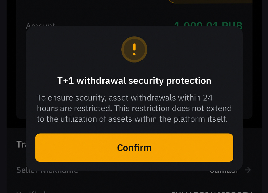 Блокировка Т+1 означает, что купленные активы будут заморожены на 24 часа. ⛔️ Это делается для того, чтобы обезопасить человека, у которого ты покупаешь крипту. Если окажется что деньги были отправлены через «черный треугольник» - продавец сможет открыть апелляцию и поддержка будет решать что с этим делать. 🆘 На каких биржах точно есть блокировка Т+1 ? Bing X Bitget Gate.io Bybit На всех этих биржах я стою Мейкером, и на всех биржах блокируют USDT на 24 часа. Абсолютно все. Хоть 5 USDT тебе продадут, хоть 5.000. 🤷🏾 На Bybit можно обойти блокировку, если ты являешься проверенным мерчантом. ☑️ Тейкером на Bybit тоже блокируют USDT, но не всегда. Если ты покупаешь USDT на небольшие суммы, (до 50.000₽) в 99% Т+1 не применяется, хотя всегда всплывает сообщение как на картинке выше. Это не означает, что USDT у тебя заблокируют на сутки, но предупреждают, что могут. Тут работает «рандом». ⚠️ Но, повторюсь, ТЕЙКЕРОМ, на НЕБОЛЬШИЕ суммы, скорее всего Т+1 применяться не будет. Э