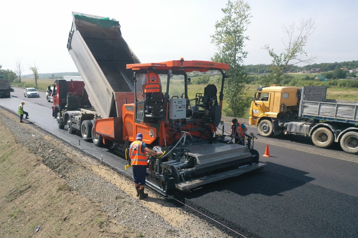 Инновационный асфальтоукладчик работает на дорогах Амурской области