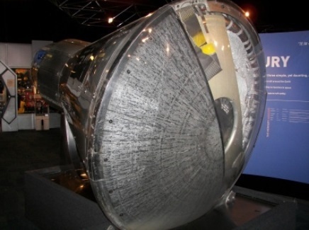 Это в капсуле, более тесной, чем кабина истребителя - настолько тесной, что астронавты говорили, что они "натягивали капсулу на себя", а не садились или входили в нее.