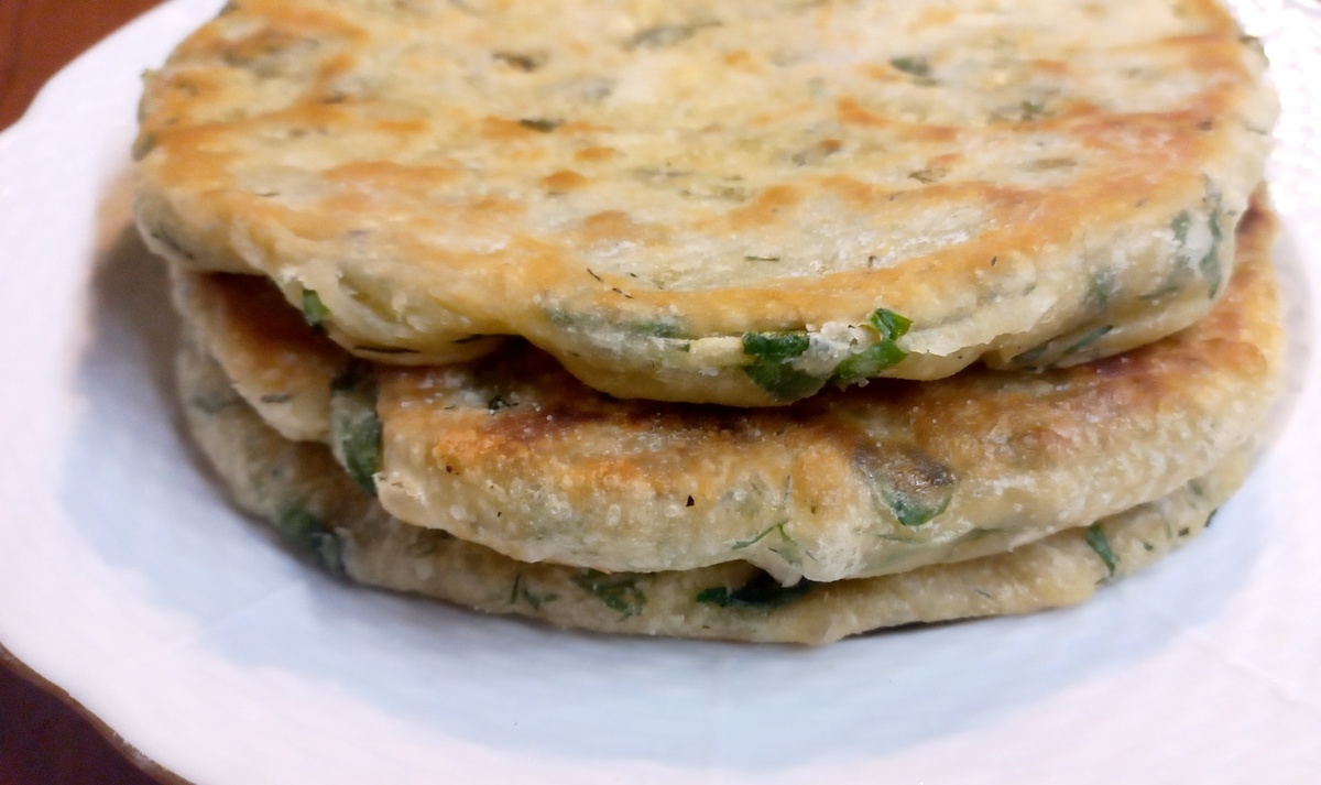 Лепешки с зеленью на кипятке- едим часто вместо хлеба, а также в пост