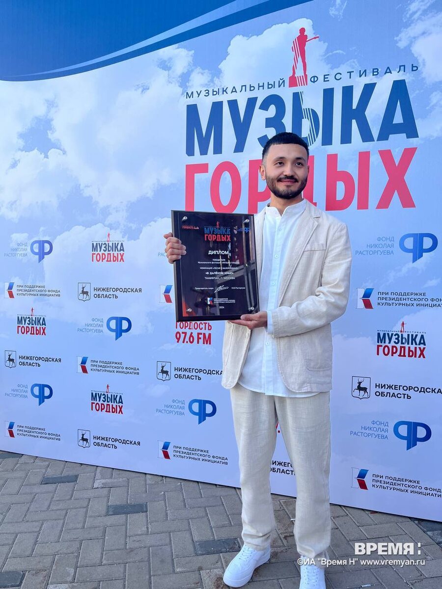 Возрастное ограничение: 0+. Объявлены победители национального конкурса патриотической песни. Итоги подвели в ходе фестиваля «Музыка гордых», который прошел на Нижне-Волжской набережной в Нижнем Новгороде в воскресенье, 25 августа. Об этом сообщает корреспондент ИА «Время Н», посетивший мероприятие. Напомним, что на конкурс поступило более 700 заявок из разных городов, из них 33 — из Нижнего Новгорода. Из этого количества были выбраны 100 лучших песен. Затем были определены тройки лидеров в семи номинациях, а также учрежден спецприз за лучший номер, не подходящий под критерии других номинаций. Кстати, в шорт-лист конкурса были включены две нижегородки. «В далеком краю» — Тамирлан (Москва). «Слышишь» — Олеся Спиридонова и Владимир Денисов (село Айгулево, республика Башкортостан). «Все возможно» — Катерина Баранова (Чистополь, республика Татарстан). «Подвиг» — «Позывной» (Йошкар-Ола). «Сторонушка» — фолк-проект «Ежевика» (Казань). «Просто быть рядом» — мужской квартет «Триумф» (Хабаровск