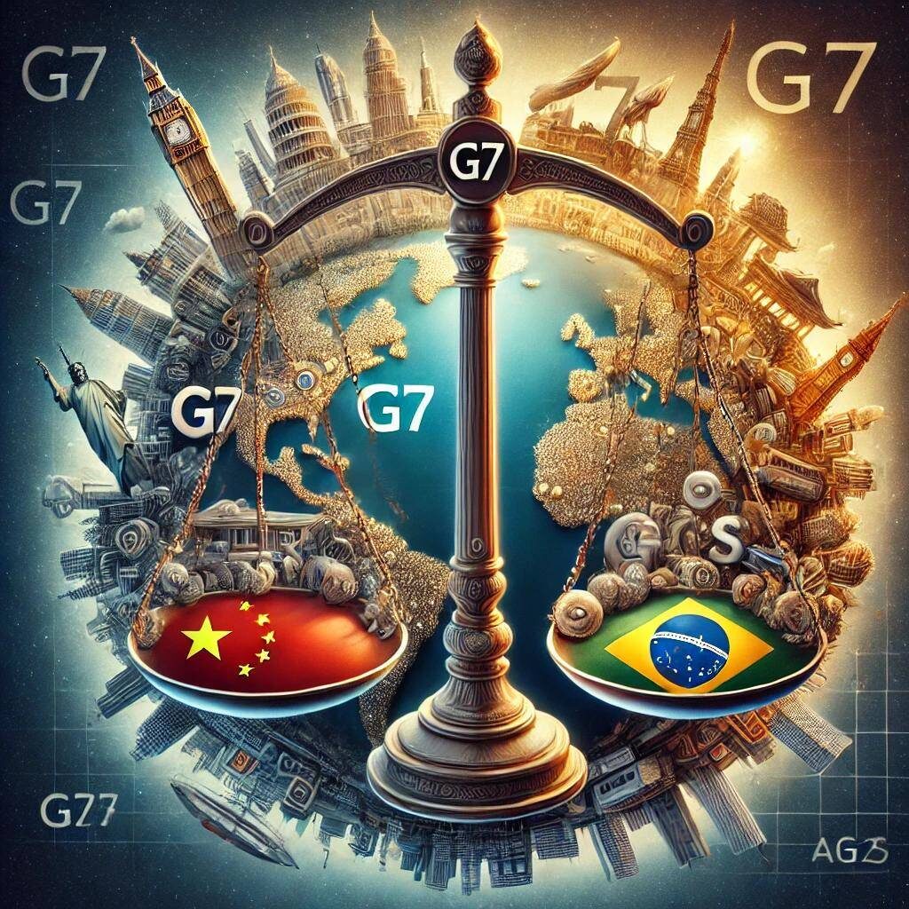 В последние годы мировая экономика переживает значительные изменения, связанные с усилением влияния стран БРИКС (ныне объединяет 10 государств, включая Россию, Китай, Индию и Бразилию, при этом новые заявки на вступление продолжают поступать) и постепенным ослаблением доминирующей роли «Большой семерки» (G7). Эти перемены не только отражают текущие экономические тенденции, но и свидетельствуют о глубинных геополитических сдвигах, способных кардинально изменить будущее мировой экономики. Сегодня мы рассмотрим, как БРИКС укрепляет свои позиции и с какими вызовами сталкивается G7. По данным, опубликованным на сайте «Финам», БРИКС в 2023 году впервые обошла G7 по доле в мировой экономике. Этот прорыв стал возможен благодаря стабильному экономическому росту стран-участниц БРИКС. Особенно выделяются Китай и Индия, которые продолжают демонстрировать впечатляющие темпы роста ВВП, что приводит к увеличению их доли в мировом валовом продукте. Китай, например, стал ключевым игроком в глобальной э