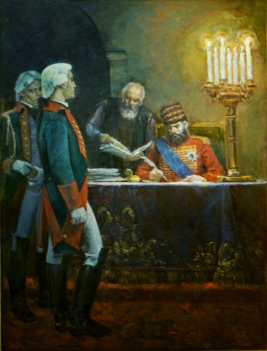 Подписание Георгиевского трактата с Картли-Кахетинским царством (Грузией). Художник А.И.Вепхвадзе 1982 г.