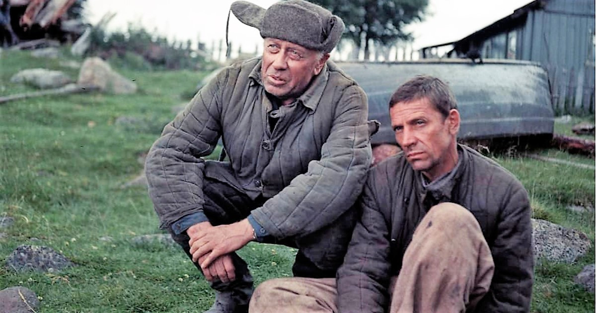 В данном случае в сюжетном пространстве «Холодного лета пятьдесят третьего...» они, чуть выйдя за порог колонии, снова готовы грабить, убивать, насильничать. На дороге у них лежит рыбацкая деревушка с факторией... Случай способствует бандитам — трус и предатель дает им полную «наводку», начальник здешней милиции заманен в ловушку, со старым матросом на пристани можно не считаться — на что он способен? Остаются еще двое ссыльных, политических, поселенных здесь после лагеря, ну да один из них — типичный «интеллигент в шляпе», не знает, с какого конца грабли берут, а второй — что называется, «доходяга», ему бы только лежать на солнышке, у крыльца или при дороге и от бесконечной, неизбывной усталости, как и от недоедания на протяжении многих лет, впадать в тяжелое забытье, крепче любого самого крепкого сна.