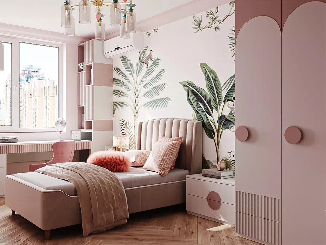 Современная мебель в комнату девочки в бело-розовых тонах с насыщенными акцентами