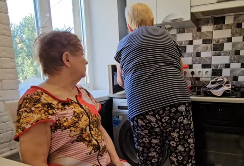Вообще надежда конечно молодец, очень старательная женщина очень хорошо выполняет свою работу. И за мамы смотрит из-за сайга присмотрят, и самвел еды на готовит в общем как мать родная умница Надюша. Надюша сидит в кресле как всегда налаживает свои ноги, а татьяну Васильевна