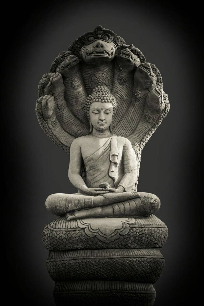 Однажды достигший просветления Будда пребывал в глубокой медитации на природе, сидя в низине под деревом Бодхи, начался сильный дождь и разразилась буря. Низина стала наполняться водой, а река выходить из берегов, но даже это не нарушило покоя медитации Будды. Мучалинда, увидевший как Будда начинает погружаться под воду, спас его, свившись кольцами и раскрыв свой большой капюшон, защитил голову просветленного от бури. 7 дней змей оберегал Будду от проливного дождя. Учеником Мучалинда так и не стал, но о