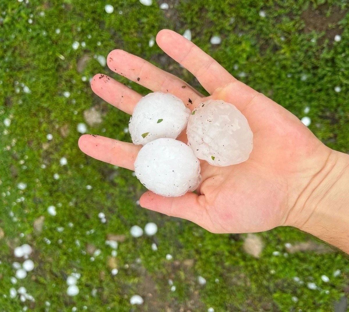 В некоторых местах градины достигают размеров куриного яйца и даже больше. Причём это не отдельные градины – на некоторых фото дворы сплошь усеяны ледяными «мячиками». Люди рассказывают, что градом побило урожай, досталось и домашним животным – на видео дворовые собаки и гулявшие по улицам свиньи в панике разбегаются кто куда. У автомобилей разбиты стёкла, многие машины помяты. Среди местных жителей тоже есть пострадавшие. Одна из градин попала в ребёнка и разбила голову до крови.