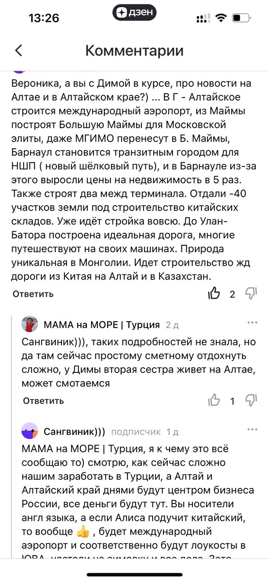Привет, друзья. Буквально на днях получила очень интересный и интригующий комментарий к одной из своих статей, который заставил нас на полном серьезе задуматься о перспективах если не переезда, то как минимум инвестирования наших накоплений в недвижимость или землю в алтайском крае и республике Горный Алтай. Вот этот комментарий: Муж сразу же загорелся идеей купить недвижимость на Алтае, которая «вырастет в 5 раз». И первое, что он сделал, это попросил прокомментировать свою родную сестру, живущую в Горно-Алтайске, высказанное в комментарии мнение про перспективы таких инвестиций. Вот что она ответила: у нас в Горно-Алтайске самые большие цены на недвижимость, практически как в москве квартиру купить. нереально дорого за жалкие и ветхие кв. м :)) В целом движуха есть, развивается и строит в основном СБЕРБАНК, развивает направление туризма и отдыха. Аэропорт ремонтируют строят, но это еще долгие годы вперед, не так масштабно и быстро, как расписали в твоём комментарии. Про Алтайский кра