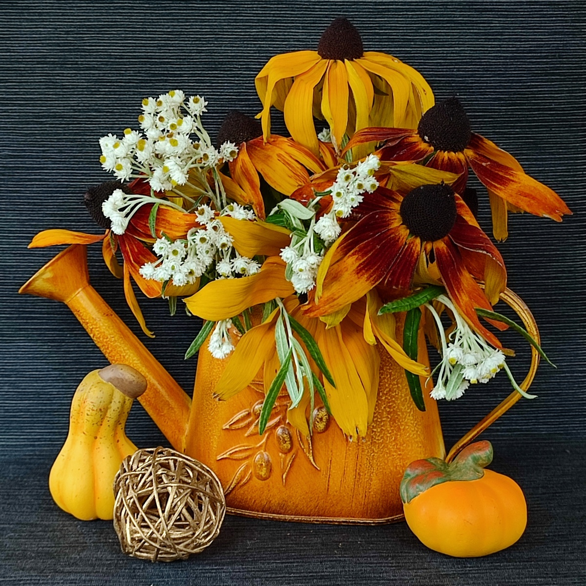 Осторожно, осень! «А вдохновитель сегодняшней серии букетов — зеленый бидончик в белый горошек»