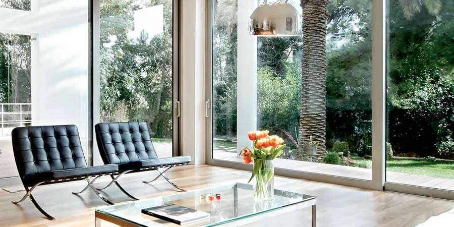 Независимо от материала изготовления рамы, система смотрится дорого и современно. «Прозрачные стены» стирают границы между постройкой и прилегающей территорией.