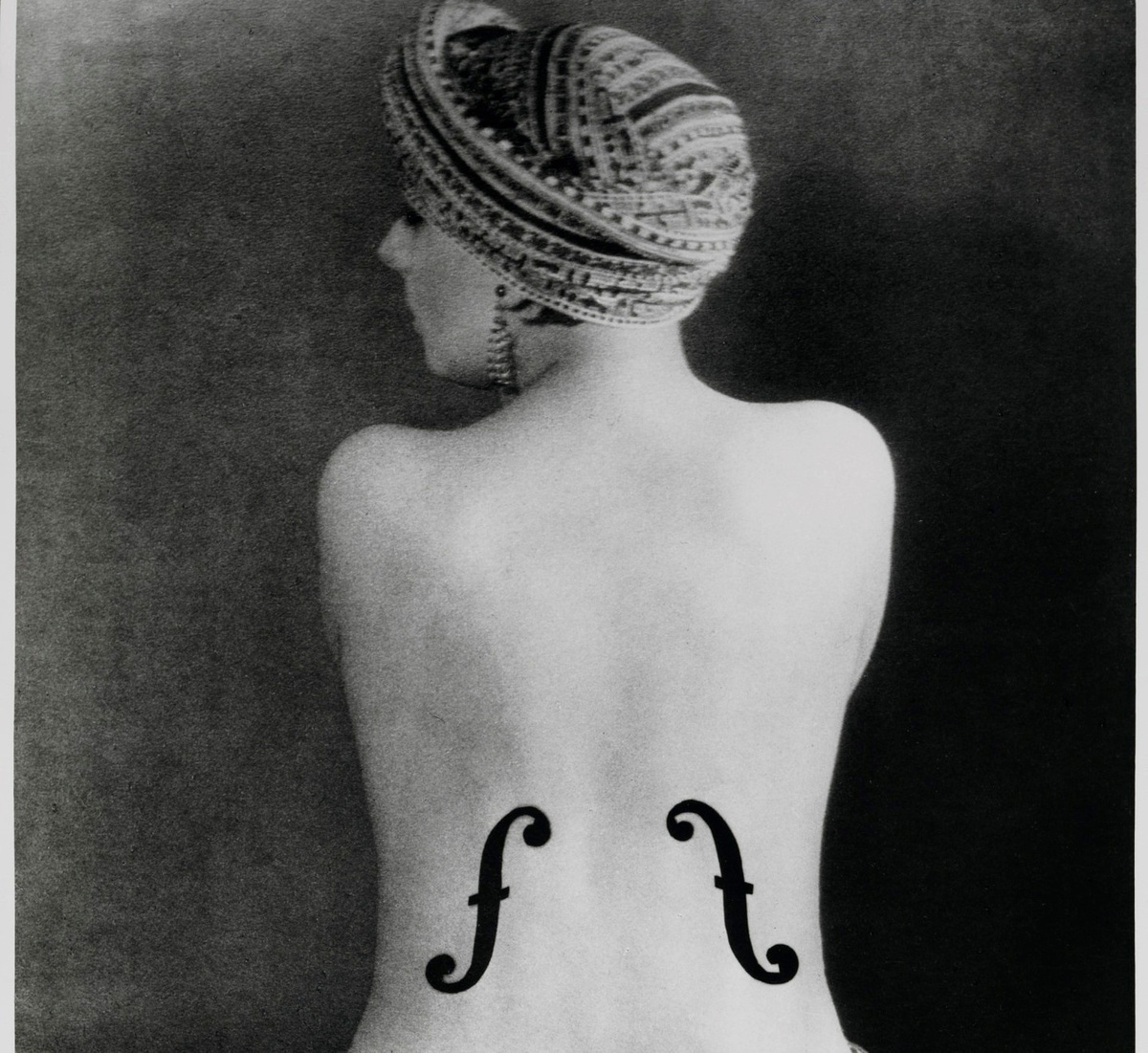 Нас ждет встреча с одной из самых знаменитых фотографий Ман Рэя, «Скрипкой Энгра», выполненной в 1924 году. Возлюбленная фотохудожника запечатлена на ней спиной к зрителю с головой, смотрящей чуть в бок. На мраморно-гладкой коже оголенной спины начертаны резонаторные отверстия — эфы, превращающие женское тело в музыкальный инструмент, изгибы которого подчеркиваются резким контрастом с нейтральным темным фоном. Спина Кики с Монпарнаса, представленная таким образом зрителю, стала не только одной из самых известных фотографий своего времени, но и настоящим произведением искусства. Когда человек круга Пикассо и Миро Эммануэль Радницкий, он же Ман Рэй, встретил Кики, та уже была любимой натурщицей парижской богемы. Однако когда он предложил ей позировать, она отказалась — фотография, мол, это не искусство, в ней слишком много реального, личного. Творческий человек, представитель движения Нового видения, Ман Рэй вынужден был ей поклясться, что сможет подняться на другую ступень. «Я фотографи