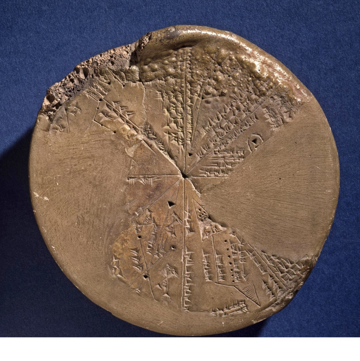 Перед вами карта звёздного неба, которую использовали в эпоху правления ассирийского царя Ашшурбанапа́ла в VII веке до н.э. Она представляет собой круглую глиняную табличку с изображением созвездий. Её диаметр 141, а толщина 32 мм. Карта была найдена на холмах Куюнджик на территории современного Ирака ー на месте бывшей столицы ассирийского царства Ниневии.