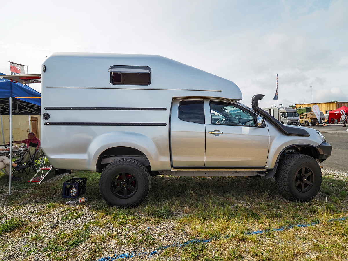 Вас интересует вопрос, а как все устроено у них?! Автомобилей, построенных для путешествий в Европе много, выглядят дорого, но так ли они хороши внутри?! Посмотрим, изучим в маленькой подборке идей для пикапов. Начнем с полуторки. По-моему, это самый оптимальный вариант для пикапа с жилым модулем. Вчетвером жить в модуле такого размера не комфортно, а для двоих отлично. Полуторная кабина позволяет иметь пространство за передним рядом сидений для рюкзаков и т.п., к чему должен быть доступ. Однако, как видите, в этой версии сделано еще и третье место, но он смещено в жилой модуль, чтобы возможно было комфортно сидеть. Идея хорошая, но сочленять кабину пикапа и жилой модуль придется очень осторожно, так как они двигаются при езде по пересеченной местности относительно друг друга. Если в предыдущем варианте "дорого-богато" заменен кузов на модуль, то тут упрощенная версия из алюминия с подъемной крышей. Причем это то, что мне всегда нравилось больше разных вкладышей (если не снимать кузов)