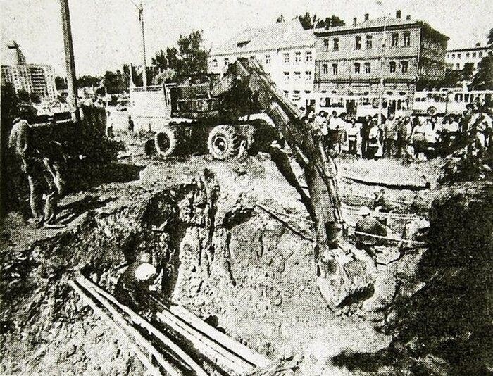 “...необычным стал этот рабочий день для экскаваторщика строительного управления №4 треста №1 Л.И. Блатуна. Во время прокладки теплотрассы в сквере по улице Урицкого Леонид Иосифович неожиданно заметил блеснувший на солнце предмет…”.