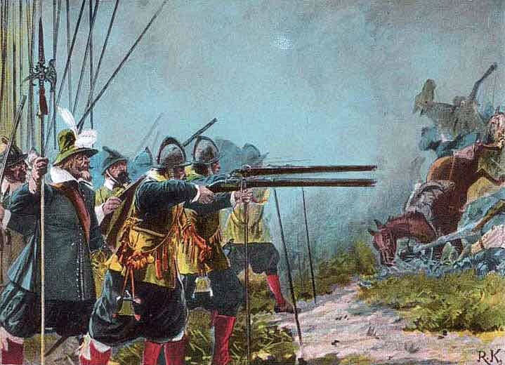 Тогда на лес двинулись и мушкетеры роялистов. На опушке завязалась перестрелка. Ни та, ни другая сторона не двигались вперед. Для выхода из тупика Хоптон бросил одну колонну пехоты в обход леса.