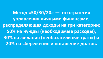Мы с вами уже обсуждали, основы личного бюджета. В этой статье мы изучим кейс по теме планирования личного бюджета, используя методику «50/30/20». Метод «50/30/20» — это стратегия управления личными финансами, распределяющая доходы на три категории: 50% на нужды (необходимые расходы), 30% на желания (необязательные траты) и 20% на сбережения и погашение долгов. Этот метод помогает сбалансировать бюджет, обеспечивая финансовую стабильность и возможность адаптации к индивидуальным целям. Мария — молодой профессионал, работающая в сфере маркетинга. Несмотря на стабильный доход, она часто замечает, что деньги заканчиваются раньше, чем наступает следующая зарплата. У Марии есть несколько финансовых целей, включая создание резервного фонда и накопление на отпуск, но отсутствие четкого плана мешает ей их достичь. 1. Создать устойчивый личный бюджет, который позволит Марии контролировать свои расходы.
