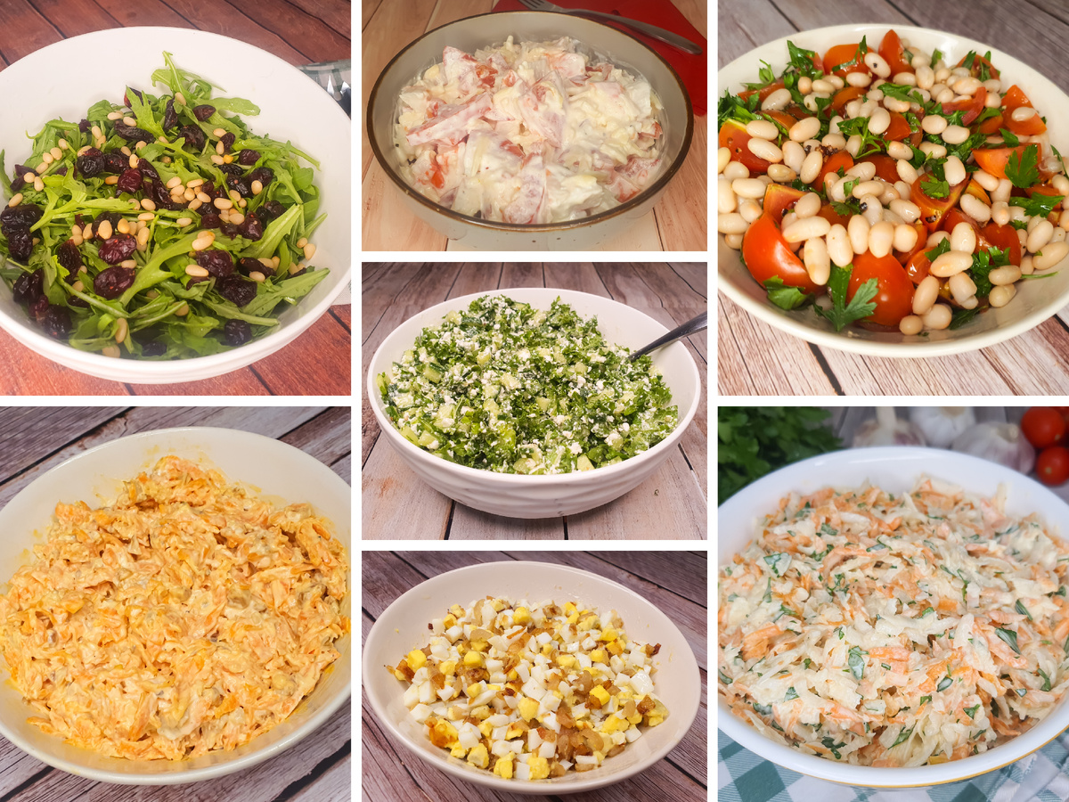 Поэтому сегодня я собрала 10 рецептов простых салатов. Они очень разные по стилю, можно выбрать вариант в зависимости от того, какое вы готовите основное блюдо. Что касается стоимости и доступности ингридиентов, то они тоже очень разные. Главное, что объединяет эти блюда – их легко можно приготовить в будний день после работы.