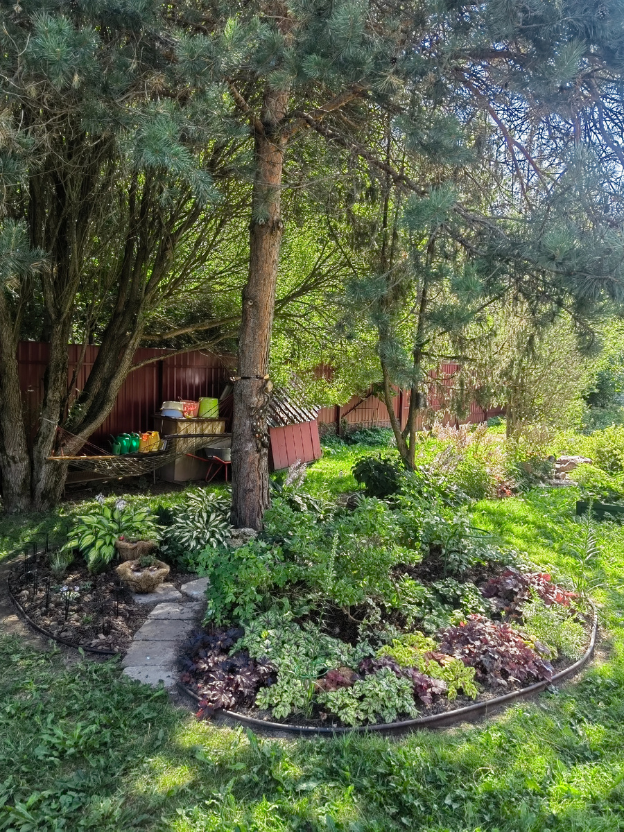 Но так как избавителей брать негде-конура и железная штуковина на этом месте видимо навсегда, и они должны слиться с садом.