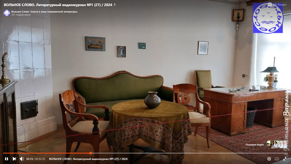 В новом выпуске литературно-художественного видеожурнала "Вольное слово" Вы можете совершить виртуальное путешествие по Музею-квартире Алесандра Блока в Санкт-Петербурге. На странице художественного редактора журнала Татьяны Варлыгиной Вы увидите кабинет поэта другие комнаты, которые они занимали с Любовью Менделеевой (Блок). Смотрите выпуск тут.