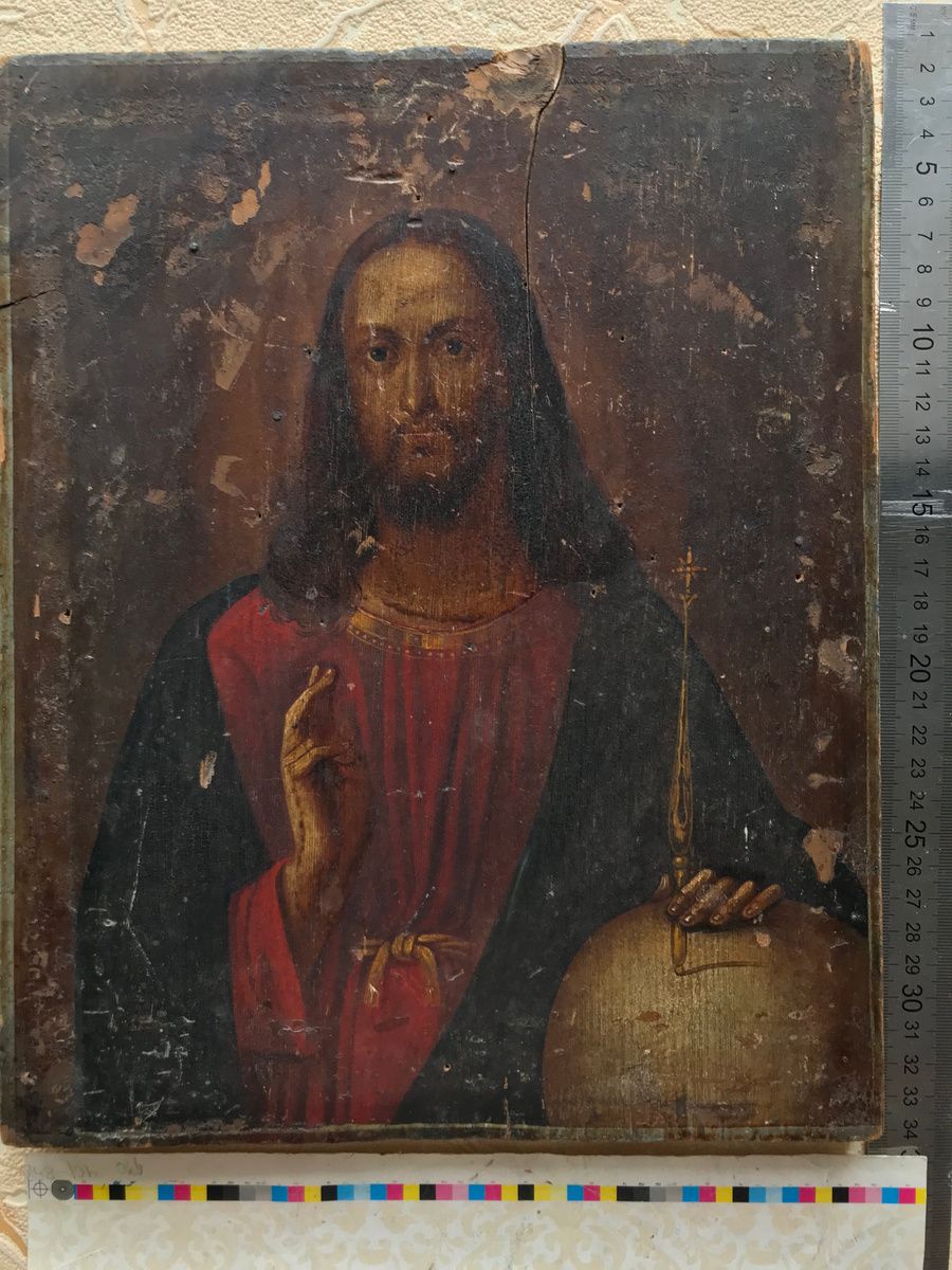 в чудесный храм неподалёку, где много красивого и интересного. Икона сама - некрупная, не храмовая; зато лик отличный. Начинаю убирать грязи, спасать поверхности. Потом после общих работ - раскрытие; снимаются микрослои деградировавших плёнок лака. . . А там и вся поверхность вылечена. Добрать грязное-опасное, выровнять микровыпады, подготовить к живописной реставрации . И в итоге - хорошая икона неброской технологии; зато проживёт ещё много лет небеззащитной.