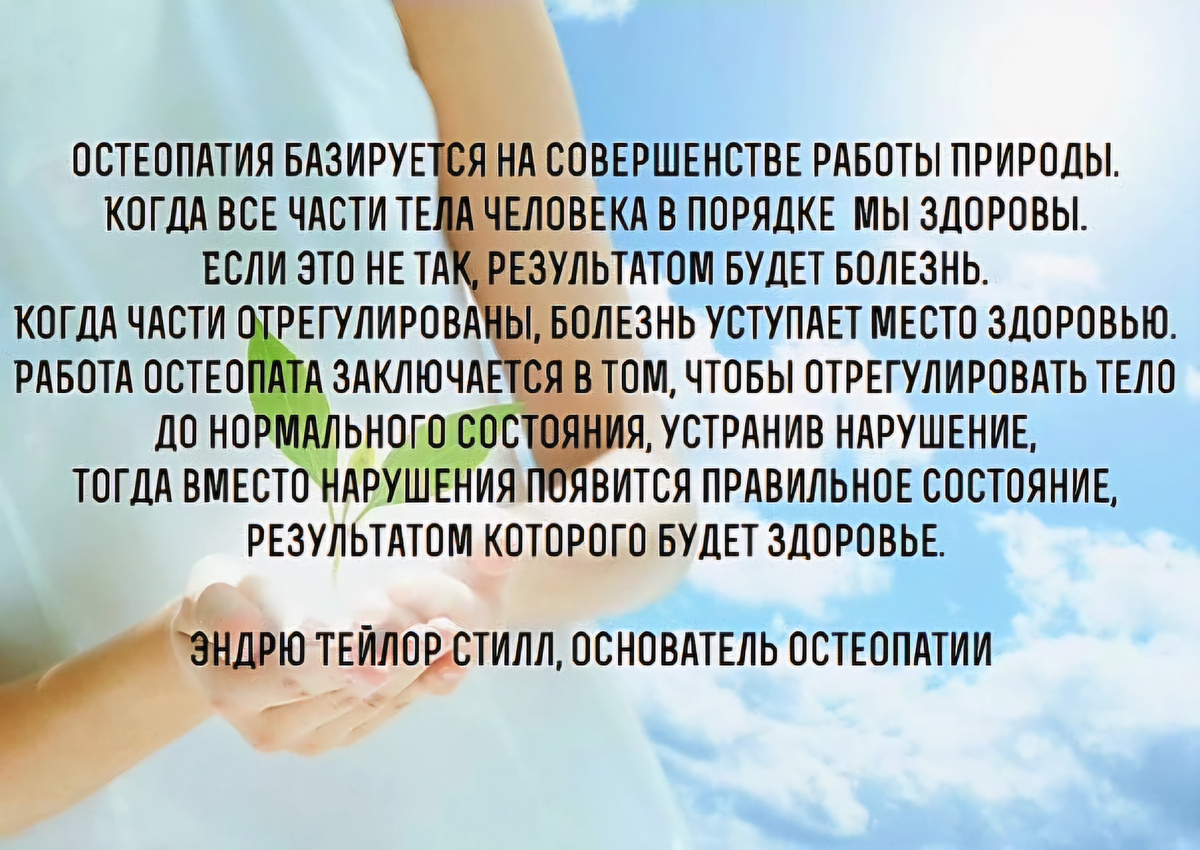 👐 Остеопатия — метод нахождения и восстановления нарушений в теле человека, возникших в структурно-анатомических отношениях частей тела и отдельных органов, которые определяет специалист, используя чувствительность своих рук и специальные техники. Как она работает? Остеопатия основана на законах физиологии и анатомии. Даже если остеопракт просто положит руку на определенную часть тела пациента, в данном случае уже запустится терапевтический процесс – он работает с частотной информацией. Остеопракт работает со всеми органами и системами организма человека. ПРИМЕР : с точки зрения остеопатии при обнаружении длительной боли в плечевом суставе и в плече нужно искать нарушения в работе височных костей. Если височная кость плохо двигается, страдает шейная часть трапециевидной мышцы. Под ней проходит плечевое сплетение. Мышца может войти в гипертонус и давить на плечевое сплетение, в результате чего могут появиться боли в плечевом суставе или в руке. Боли в правом плечевом суставе также, к