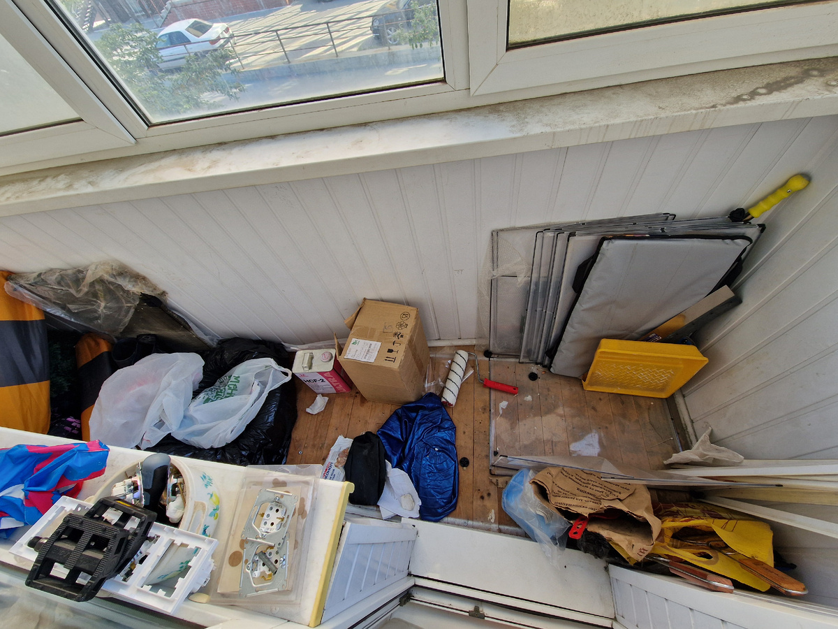 Балкон — это удивительное место. Он как аппендикс у квартиры, который накапливает в себе весь хлам и мусор ровно до того момента, пока не взорвётся... Пока не взорвётся терпение у меня или у моей жены. Тогда и начинается генеральная уборка балкона. Я не знаю почему, но балкон всегда был под моей опекой. Такое негласное правило, на которое я не подписывался, но каждый раз иду и прибираю там сам. Все предыдущие разы, а их было тьмы и тьмы, порядка хватало ровно на пару месяцев. Потом хлама становилось так много, что ни о какой организации пространства в этом ящике Пандоры речи идти не могло. На сегодняшнее утро наш балкон выглядел так: А это я уже успел вытащить, чтобы перебрать и оставить только нужное. К сегодняшнему наведению порядка я подошёл чуть умнее, чем раньше. Я заказал стеллаж. Не бог весть какой, но всё же... Он состоит из какого-то нетканого материала и трубок, толщиной чуть больше, чем фольга. Но производитель уверяет, что каждая полка способна выдержать нагрузку до