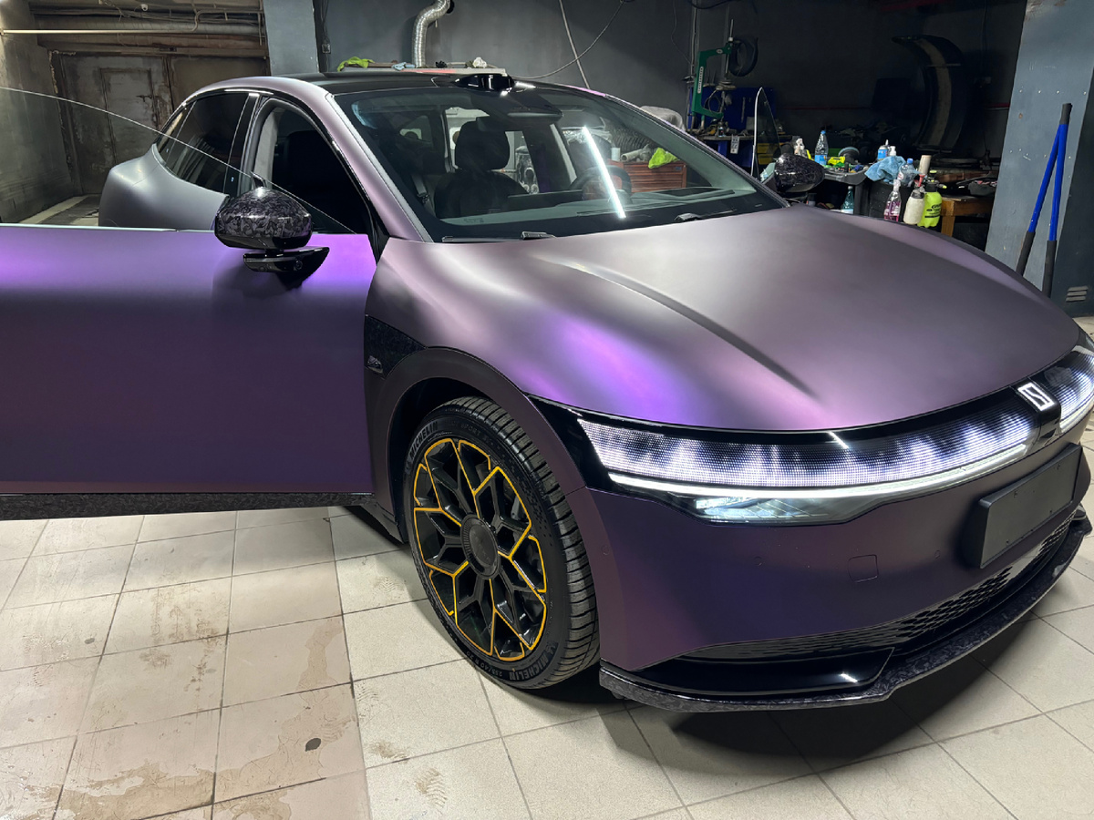Приветствую дорогие читатели. Сегодня у нас в гостях необычный автомобиль,а именно zeekr 007 и я попробую сделать его обзор. Данный автомобиль прошел у нас комплекс работ по изменению цвета полиурейтановой пленкой,изменению цвета дисков и керамики пленки,что поможет автомобилю выделяться на дорогах. Итак,приступим к самому обзору. Внешность автомобиля получилась достаточно необычной и не похожей ни на что. Можем наблюдать обилие различных подсветок,и благодаря им ,автомобиль,на мой взгляд напоминает какой то космический корабль. На любителя в общем. Что касаемо интерьера,то здесь царствует минимализм. Ничего лишнего с управлением через центральную мультимедиа систему и динамической подсветкой по всему салону. Общее впечатление об автомобиле: Что касаемо дизайна,на вкус покупателя,но во всем остальном авто берет своим высоким качеством. По материалам салона могу отметить,что защита кожи и алькантары специальными составами может продлить срок эксплуатации салона и со