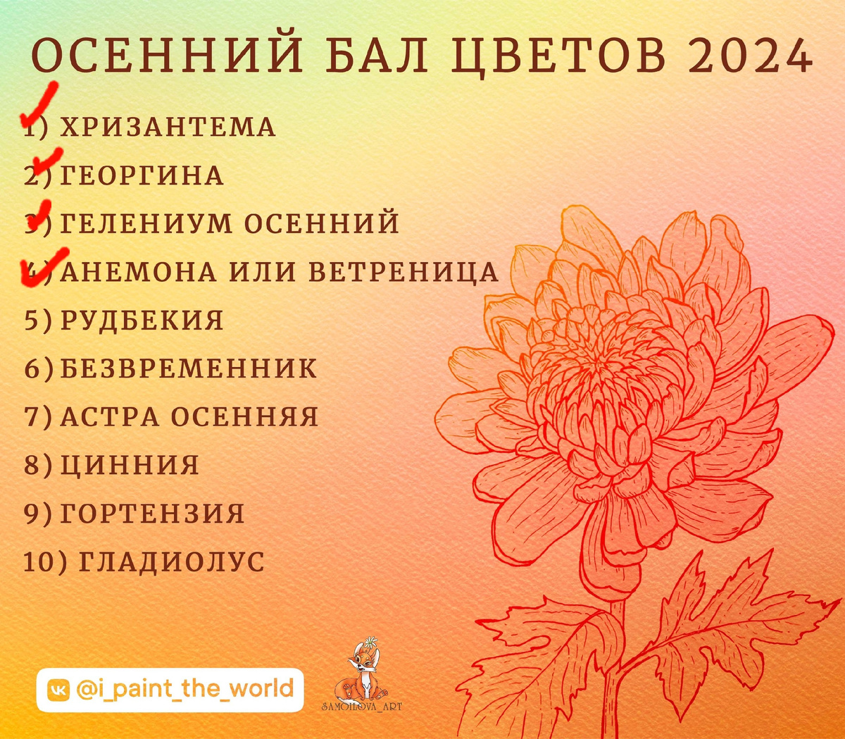 Марафон "Осенний бал цветов" 2024: сегодня гелениум осенний и анемона