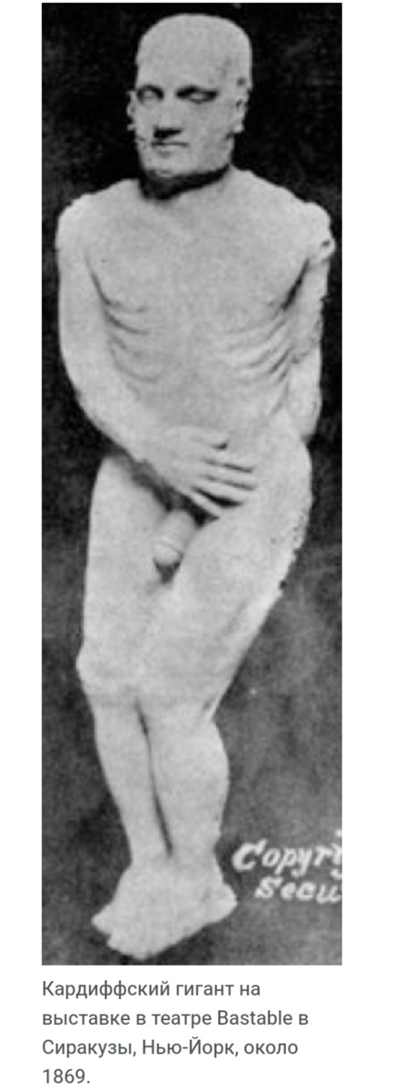 Гигант из Кардиффа — одна из самых известных мистификаций современной истории, каменная скульптура человека ростом более 3 метров, выдававшаяся за окаменелые останки реального гиганта. 16 октября 1869 года двое рабочих, Гидеон Эммонс и Генри Николс, работавших на ферме Уильяма Ньюэлла в общине Кардифф (хутор в округе Онондага в штате Нью-Йорк, США) занимаясь рытьём колодца, обнаружили якобы хорошо сохранившиеся окаменелые останки человека трёхметрового роста. Было объявлено, что находка датируется библейскими временами и представляет собой останки коренного жителя Америки. Владелец земли, Уильям Ньюэлл, через несколько дней после открытия начал взимать плату с желающих посмотреть на находку в 25 центов, вскоре удвоив её. Хотя археологи объявили, что останки никак не могут быть подлинными, ажиотаж газет вокруг открытия остановить не удалось, а некоторые христианские проповедники даже стали защищать её подлинность. Идея мистификации принадлежала Джорджу Халлу, атеисту, который таким о