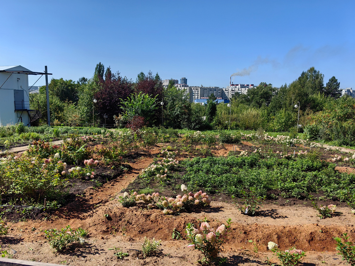 Многолетники, в том числе и розы, в Ботаническом саду Иркутска