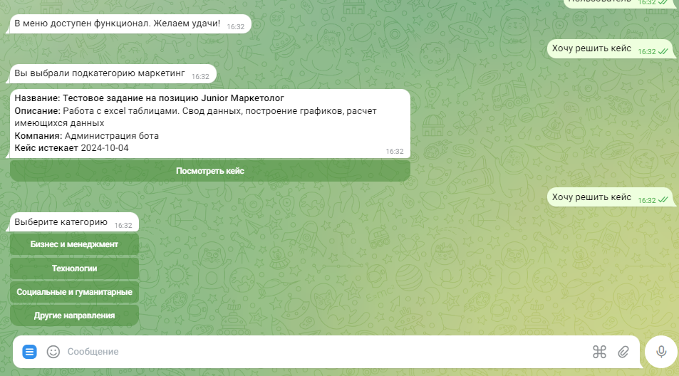 ТелеграмБот, где можно посмотреть архивные кейсы в качестве примера, или даже решить активный кейс и получить обратную связь от автора.
