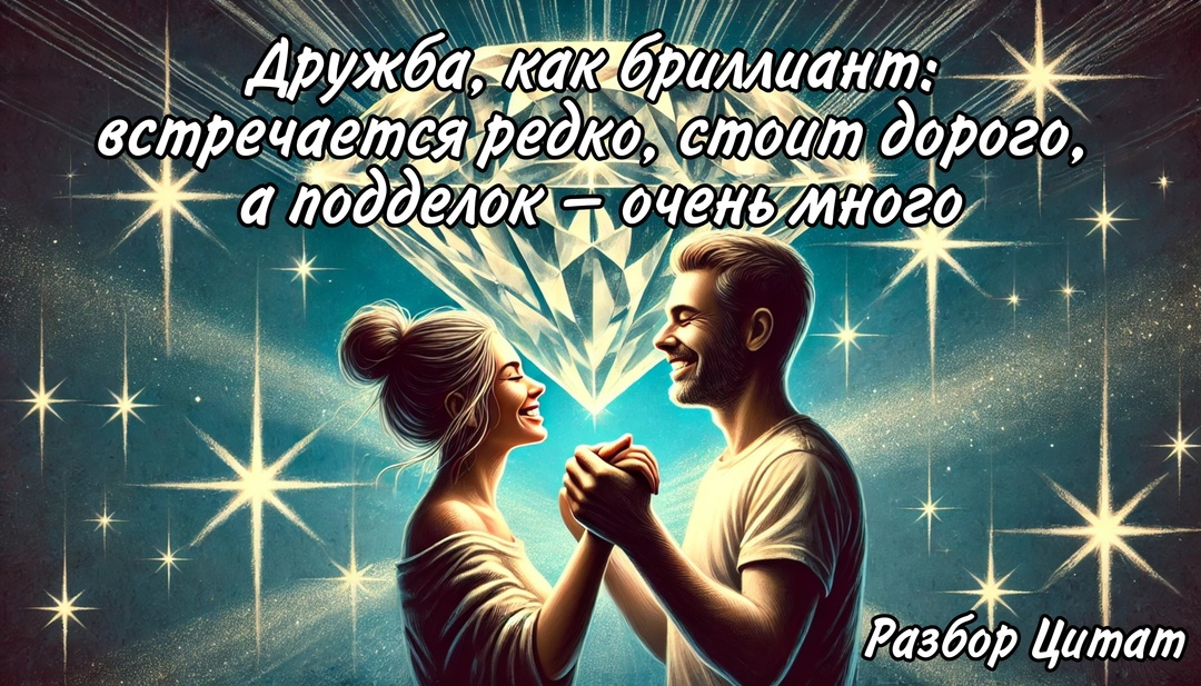 Π¦ΠΈΡΠ°ΡΠ°: "ΠΡΡΠΆΠ±Π°, ΠΊΠ°ΠΊ Π±ΡΠΈΠ»Π»ΠΈΠ°Π½Ρ: Π²ΡΡΡΠ΅ΡΠ°Π΅ΡΡΡ ΡΠ΅Π΄ΠΊΠΎ, ΡΡΠΎΠΈΡ Π΄ΠΎΡΠΎΠ³ΠΎ, Π° ΠΏΠΎΠ΄Π΄Π΅Π»ΠΎΠΊ β ΠΎΡΠ΅Π½Ρ ΠΌΠ½ΠΎΠ³ΠΎ." Π¦ΠΈΡΠ°ΡΠ° Β«ΠΡΡΠΆΠ±Π°, ΠΊΠ°ΠΊ Π±ΡΠΈΠ»Π»ΠΈΠ°Π½Ρ: Π²ΡΡΡΠ΅ΡΠ°Π΅ΡΡΡ ΡΠ΅Π΄ΠΊΠΎ, ΡΡΠΎΠΈΡ Π΄ΠΎΡΠΎΠ³ΠΎ, Π° ΠΏΠΎΠ΄Π΄Π΅Π»ΠΎΠΊ β ΠΎΡΠ΅Π½Ρ ΠΌΠ½ΠΎΠ³ΠΎΒ» Π°ΠΊΡΠ΅Π½ΡΠΈΡΡΠ΅Ρ Π²Π½ΠΈΠΌΠ°Π½ΠΈΠ΅ Π½Π° ΡΠ΅Π½Π½ΠΎΡΡΠΈ ΠΈ ΡΠ΅Π΄ΠΊΠΎΡΡΠΈ Π½Π°ΡΡΠΎΡΡΠ΅ΠΉ Π΄ΡΡΠΆΠ±Ρ. Π‘ΡΠ°Π²Π½ΠΈΠ²Π°Ρ Π΄ΡΡΠΆΠ±Ρ Ρ Π±ΡΠΈΠ»Π»ΠΈΠ°Π½ΡΠΎΠΌ, Π°Π²ΡΠΎΡ ΠΏΠΎΠ΄ΡΡΡΠΊΠΈΠ²Π°Π΅Ρ, ΡΡΠΎ ΡΠ°ΠΊΠΈΠ΅ ΠΎΡΠ½ΠΎΡΠ΅Π½ΠΈΡ β ΡΡΠΎ ΡΠΎΠΊΡΠΎΠ²ΠΈΡΠ΅, ΠΊΠΎΡΠΎΡΠΎΠ΅ Π½Π΅ Π»Π΅Π³ΠΊΠΎ Π½Π°ΠΉΡΠΈ. ΠΠ°ΡΡΠΎΡΡΠΈΠ΅ Π΄ΡΡΠ·ΡΡ, ΠΊΠ°ΠΊ ΠΈ Π±ΡΠΈΠ»Π»ΠΈΠ°Π½ΡΡ, ΡΡΠΎΡΡ Π΄ΠΎΡΠΎΠ³ΠΎ, Π² ΡΠΌΡΡΠ»Π΅ ΡΡΠ΅Π±ΡΡΡ Π·Π½Π°ΡΠΈΡΠ΅Π»ΡΠ½ΡΡ