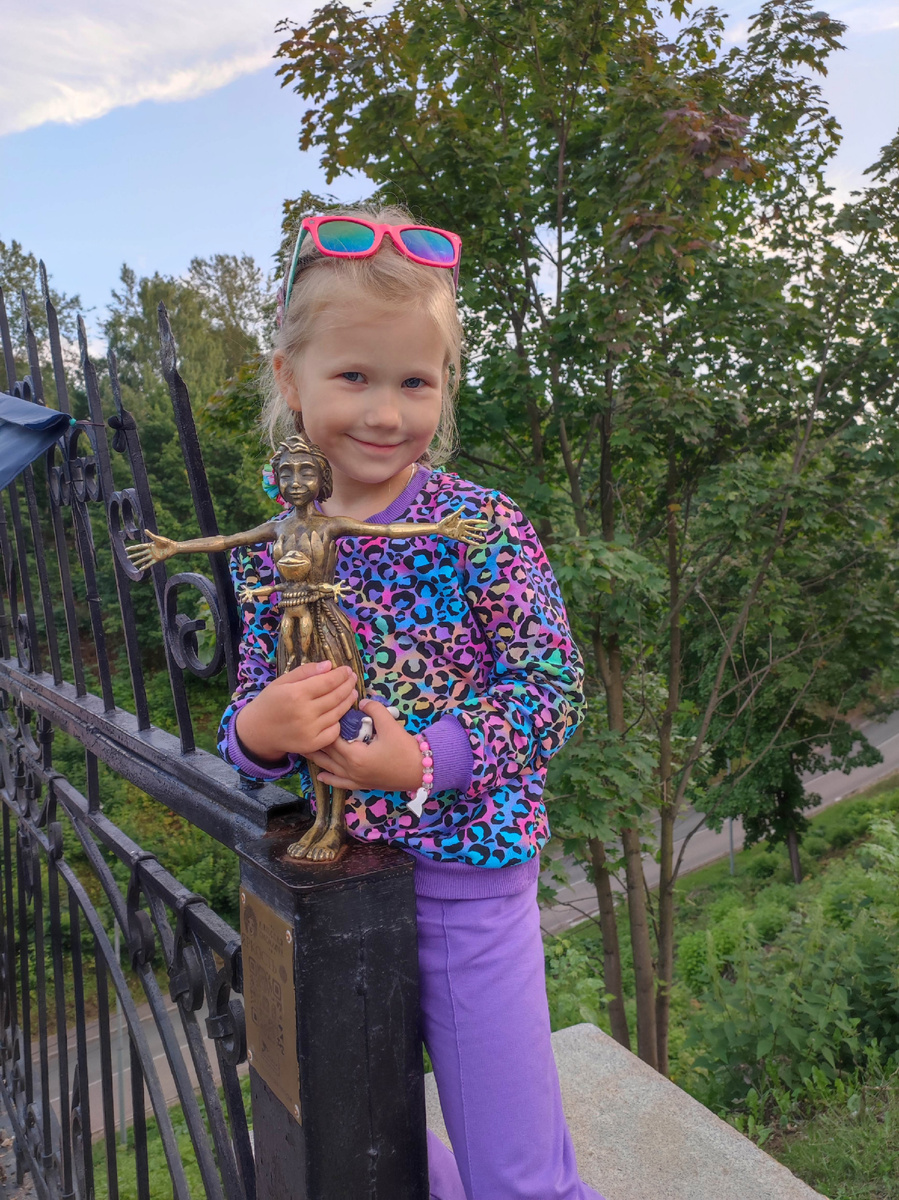По легенде в XIV веке новгородские пираты решили на берегу реки Вятки основать поселение. Заготовили для строительства лес, а утром они обнаружили, что весь материал перенесён на другое место ниже по течению. Тогда и появилась легенда о том, что на том месте любят озорничать Кикиморы. С тех пор Киров стал признанной родиной болотной жительницы. У неё есть даже своя резиденция в интерактивном парке "Заповедник сказок". Но вход туда осуществляется только по предварительным заявкам в составе организованных групп. В формате свободных гуляний территория, к сожалению, не работает. Хотя странно... Почему так? Два года назад в Кирове на семь Кикимор стало больше. У каждой бронзовой скульптуры есть своё название. И везде она в компании лягушки. Где их искать? ✓Кикимора Здоровье. Это наша первая найденная скульптура. В интернете было написано, что она находится в Александровском саду у парка аттракционов. Но мы её нашли в другом месте - на лавочке на центральной