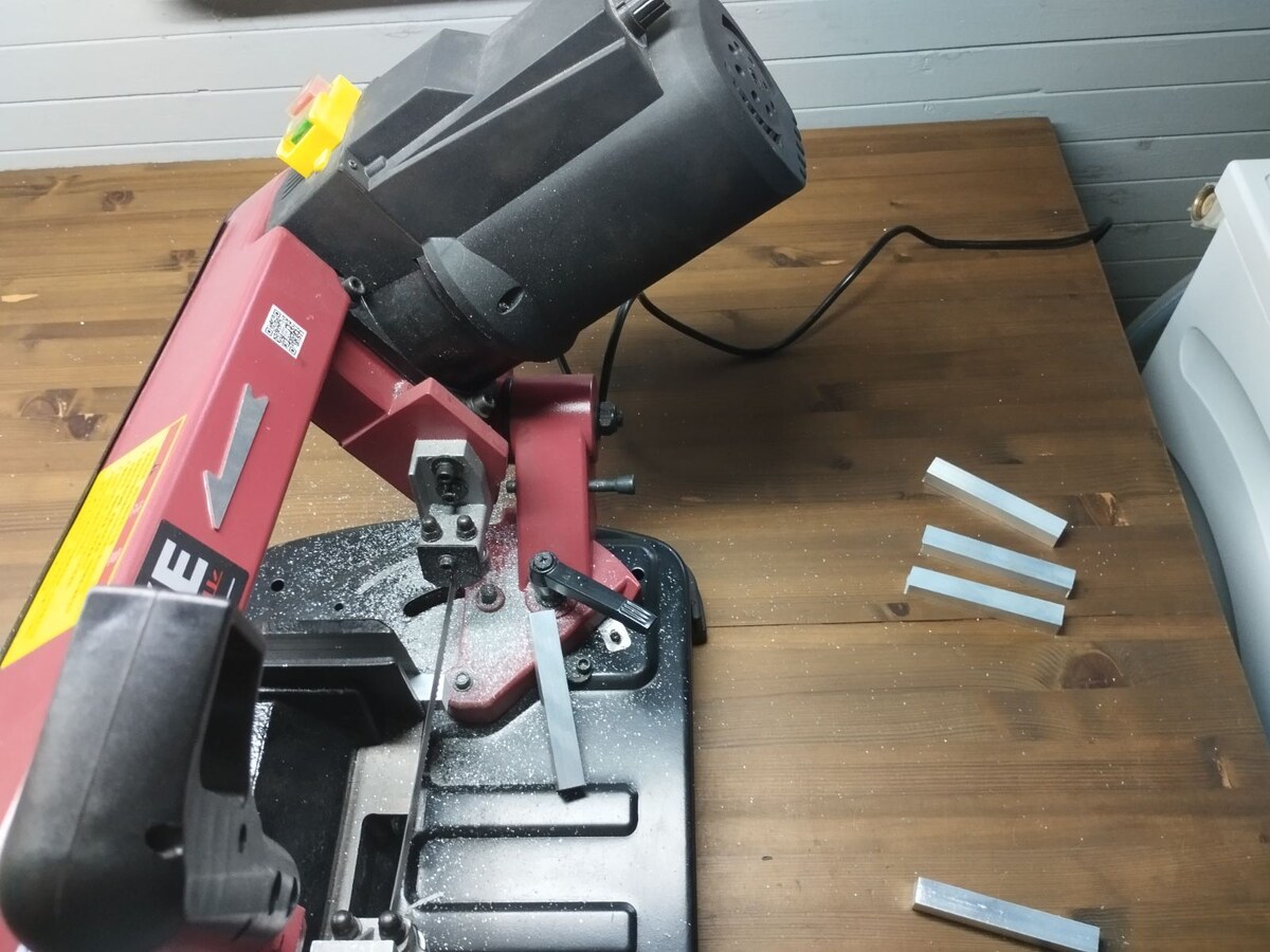 Вот как это получилось "в железе". Для начала, я взял дюралевый квадрат 15х15 (меньше - получается смешно, примерял). И порезал этот квадрат на ленточной пиле.